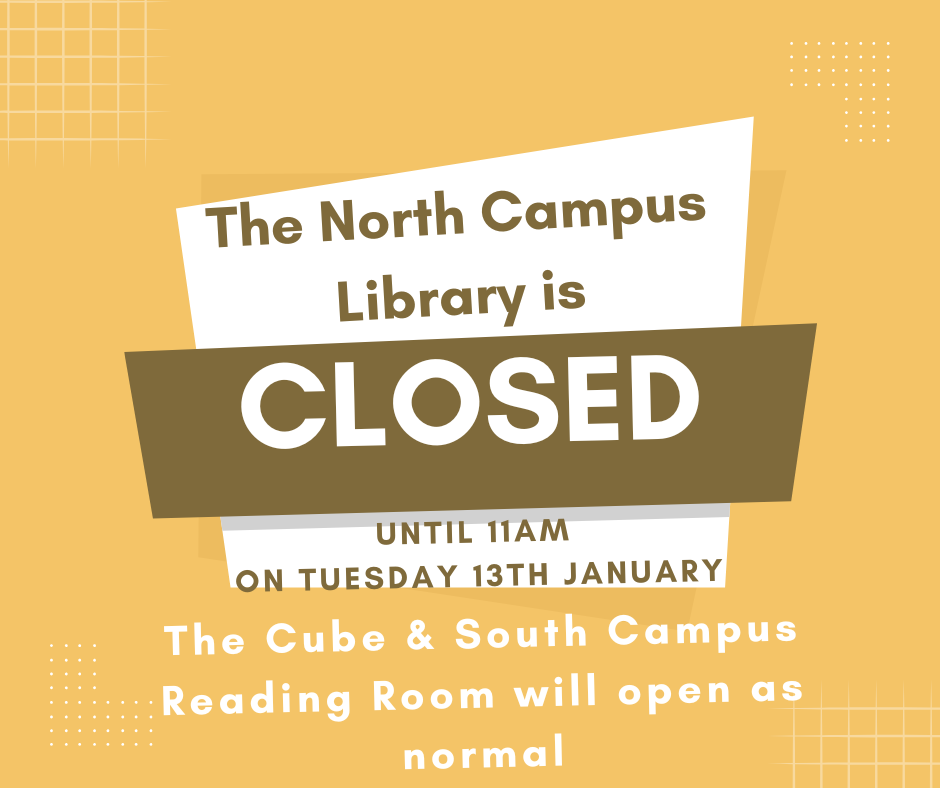 The North Campus Library will open at 11am on Tuesday January 13th to facilitate Staff Training.
